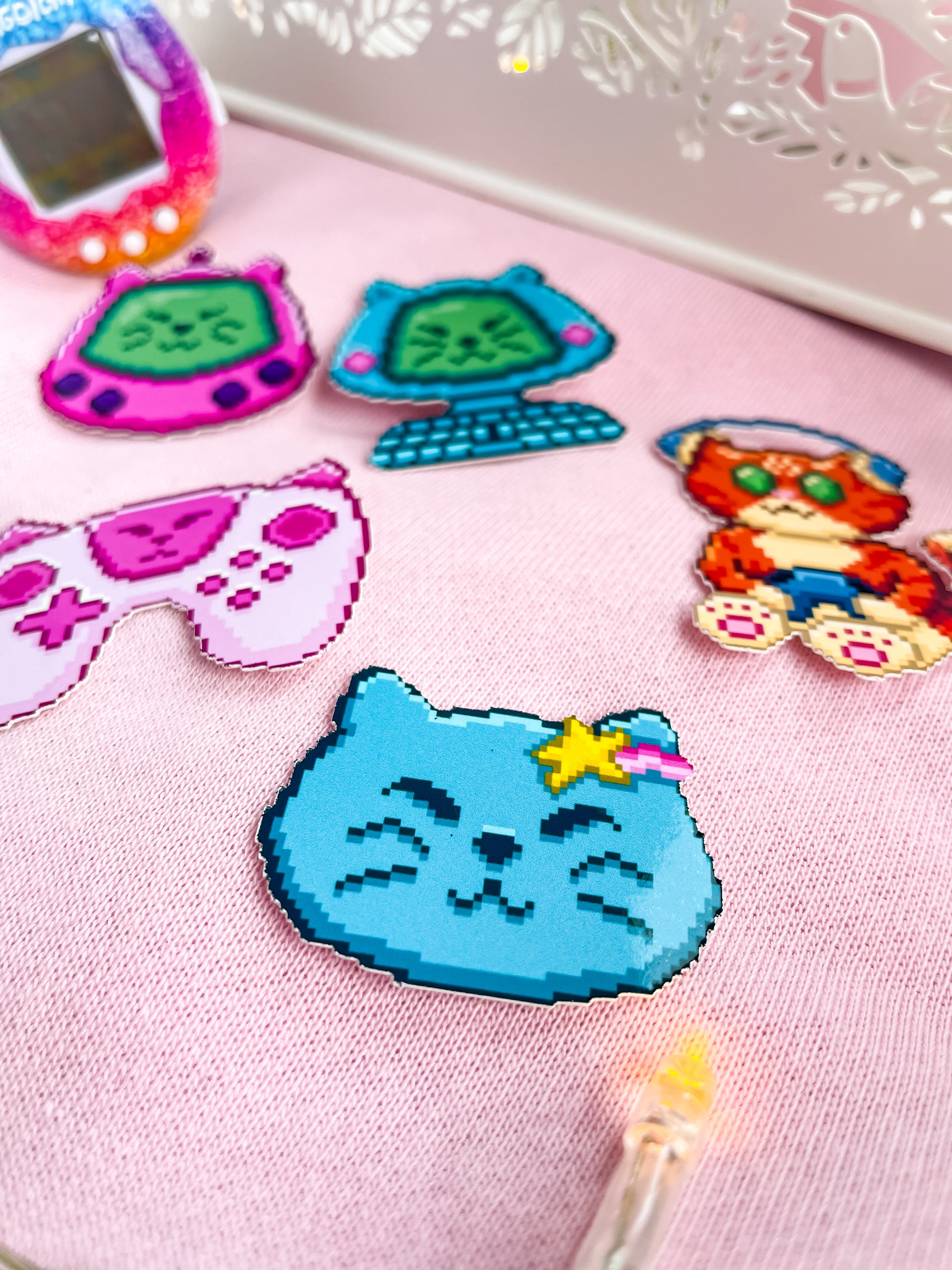It's time to step back in time to a more... Pixelated scene! Retro Gamer Cats are ignoring everything around them and looking to play games eternally! Here to add some colour and chill retro vibes to your gaming set up! Get a fix of the 80's and your favourite throwback games feline twist in this game inspired cat sticker set.