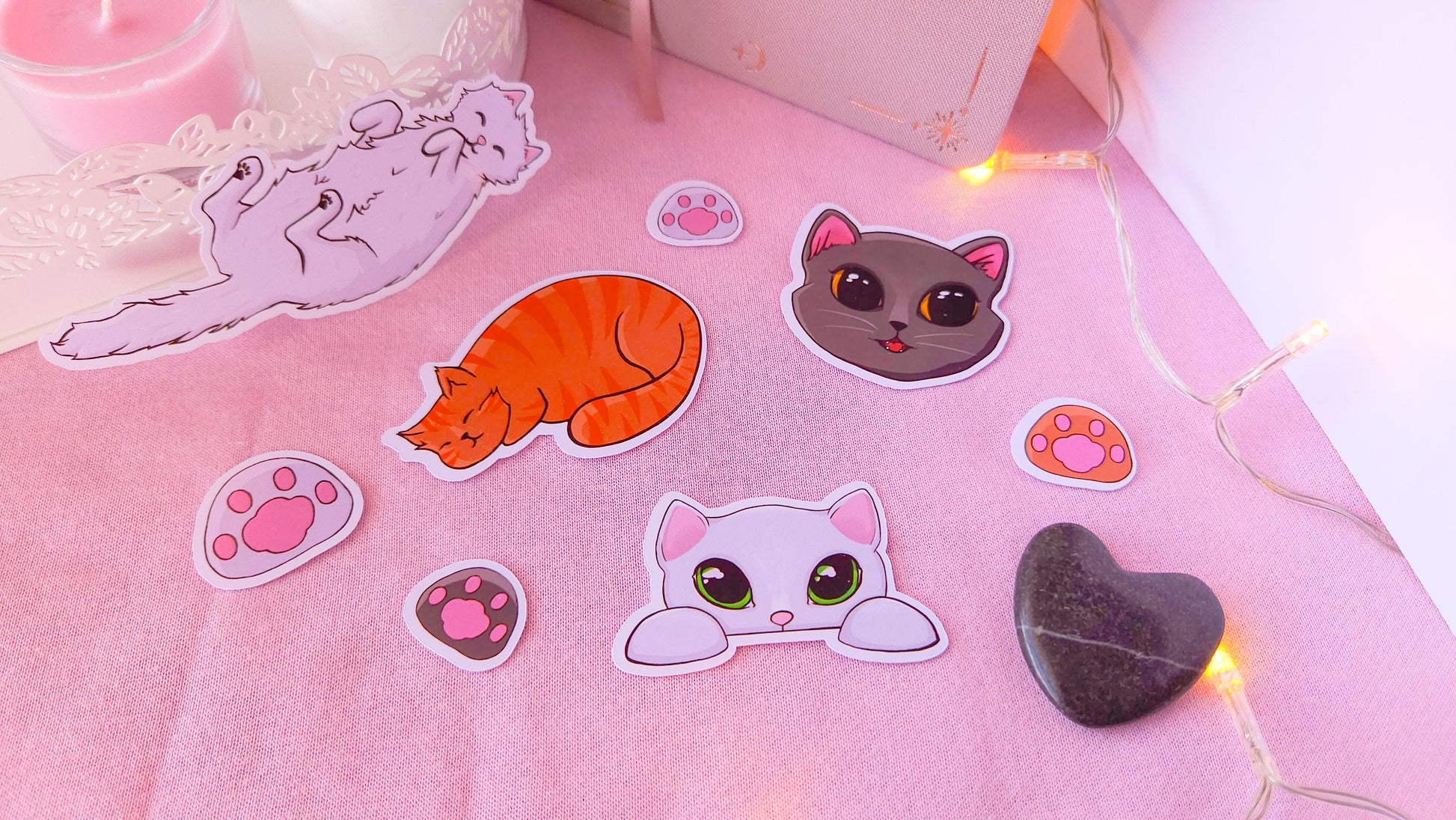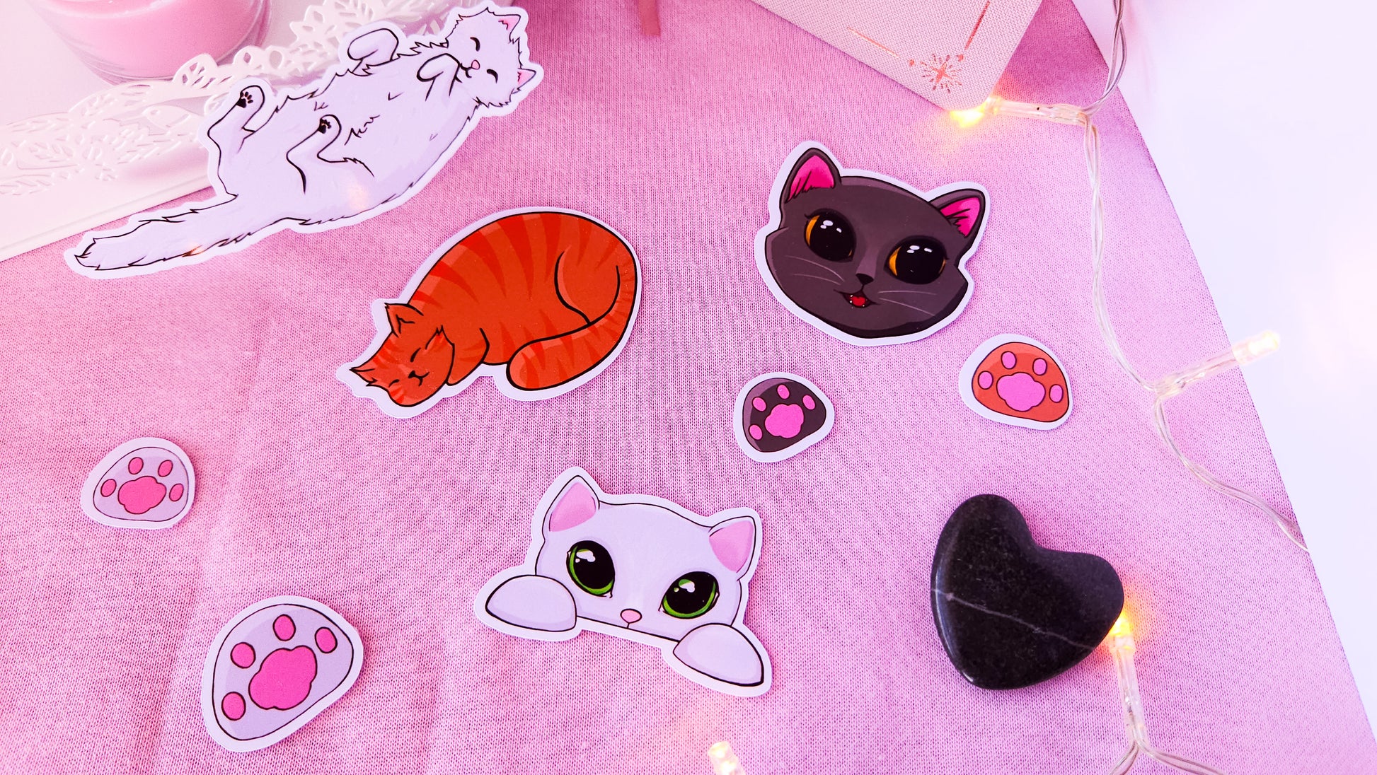 Enjoy this set of four cat stickers complete with extra paws for good luck!